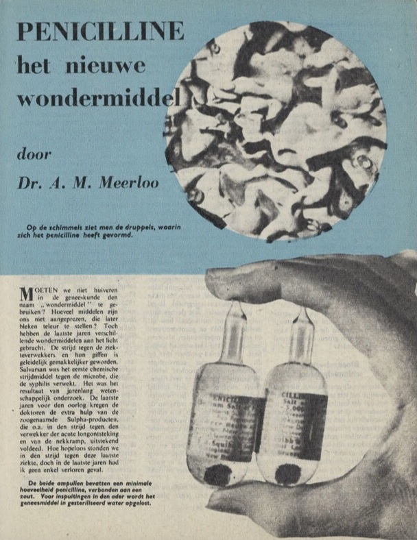 Titelpagina van een kort artikel over penicilline in De wervelwind, een Brits luchtpamflet in de nacht van 24 op 25 april 1944 werd verspreid boven Appingedam, Delfzijl, Hilversum, Lage Vuursche, Keulen en Rucphen. Het artikeltje is een van de eerste Nederlandse publicaties over penicilline. De wervelwind 19 (1944), p. 33. L. de Vries en J. de Groot, De Wervelwind, De Vliegende Hollander en andere uit de lucht verspreide vlugschriften. Een fascinerende selectie uit de oorlogsjaren 1940-1945 (Laren: Skarabee 1974), p.158.