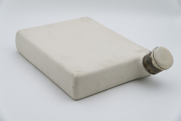 Rechts: Porseleinen kweekvat voor penicilline. Vier kweekvaten hadden samen een inhoud van 4,154 liter (een gallon), goed voor ongeveer één flesje penicilline. Oxford, Museum of the History of Science, inv.nr. 19146. Foto: Museum of the History of Science, University of Oxford. Fotograaf: (onbekend). © Museum of the History of Science, University of Oxford.