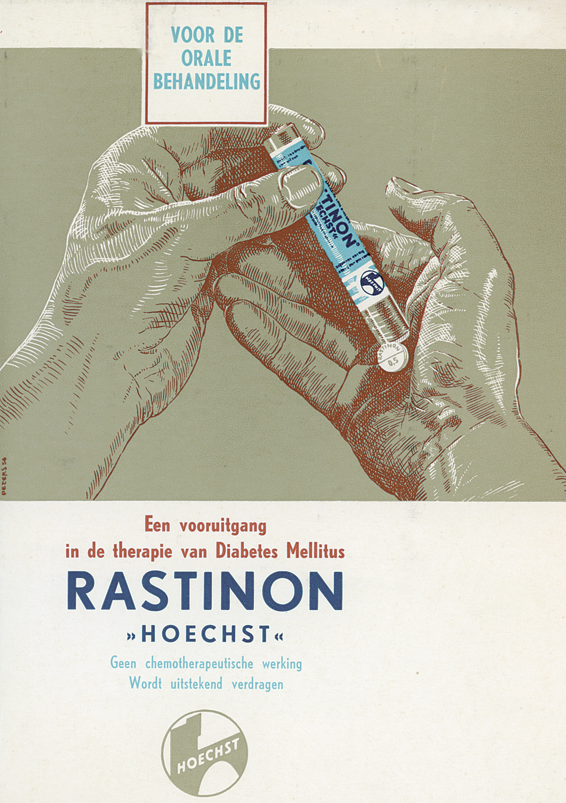 Rastinon (tolbutamide) behoort tot de nieuwe groep sulfonylureumderivaten, orale bloedsuikerverlagende middelen. Het middel komt in 1956 op de markt met als marketingstrategie om een nieuwe groep van patiënten met een verhoogd bloedsuikergehalte aan te boren, die wij nu kennen als diabetes type-2 patiënten. De marktintroductie wordt aangekondigd door Hoechst als een nieuw tijdperk in de diabetestherapie. Het blijkt een gat in de markt met exponentiële groeicijfers van patiënten met diabetes (suikerziekte) en benodigde bloedsuikerverlagende middelen wereldwijd.