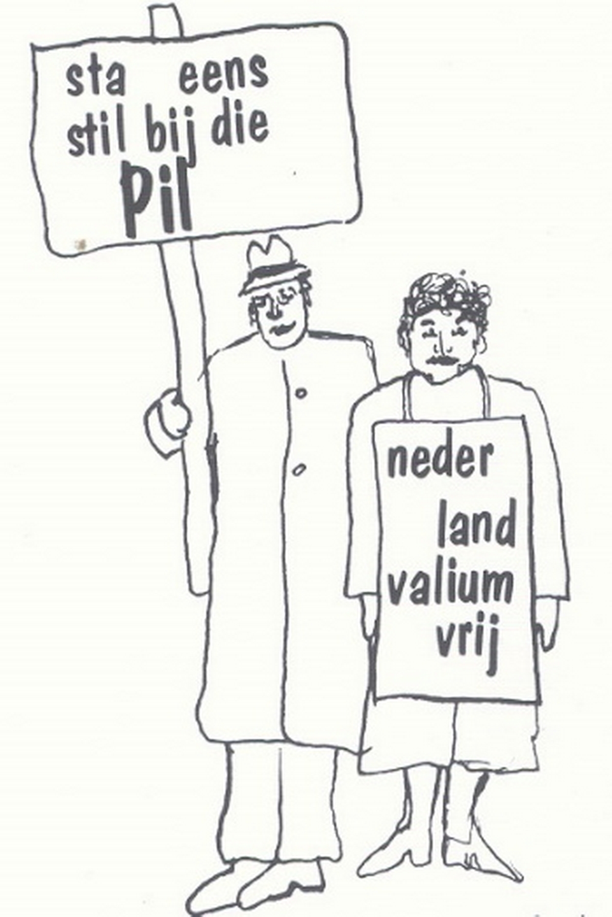 Rustgevende pillen als Librium en Valium afficheren zij als ‘dwangbuizen van deze maatschappij’ die het productieproces draaiende houden, ten koste van de zelfontplooiing van het naar welzijn snakkende individu.